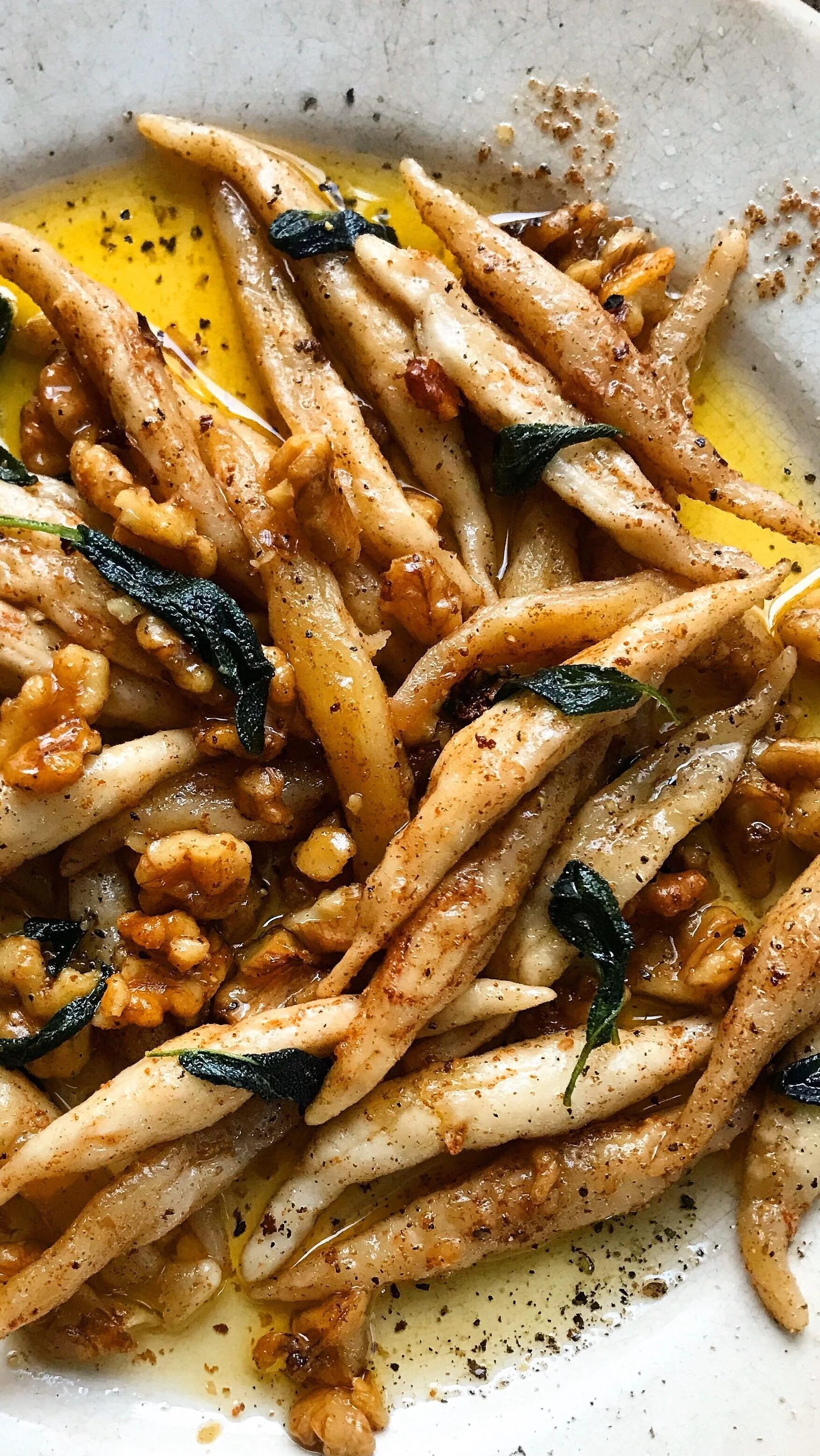 When spring produce starts to appear in beckoning piles at the market, I seize the chance to feature their bright flavors in simple, delectable dishes. Cook the mushrooms first to ensure burnished, caramelized surfaces—perfect for catching the cream sauce.
